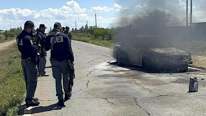 Jiménez.- La tarde de hoy, un vehículo en llamas fue localizado sobre la carretera Jiménez-Parral, a la altura del entronque al Pueblito de Allende, según informó la policía. En el lugar también se encontraron casquillos de fusil de asalto, lo que apunta a la posibilidad de un ataque violento.