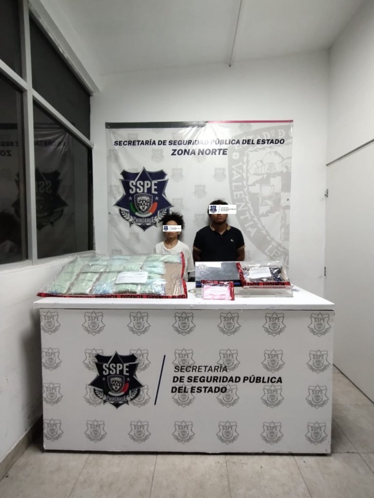 Con base en los trabajos de videovigilancia y recorridos de seguridad implementados en Ciudad Juárez, personal del Grupo Especial de Detectives de la Secretaría de Seguridad Pública del Estado, detuvo a una pareja a quienes se les aseguraron 30 bolsas de supuesto fentanilo y porciones de presunta “cocaína rosa”.
