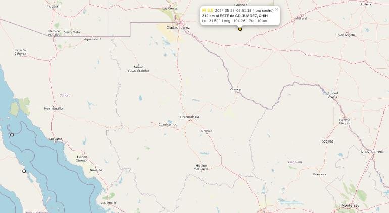 Chihuahua.- El Servicio Sismológico Nacional (SSN) identificó un sismo con magnitud preliminar de 3.8 grados desde Ciudad Juárez, estado de Chihuahua.