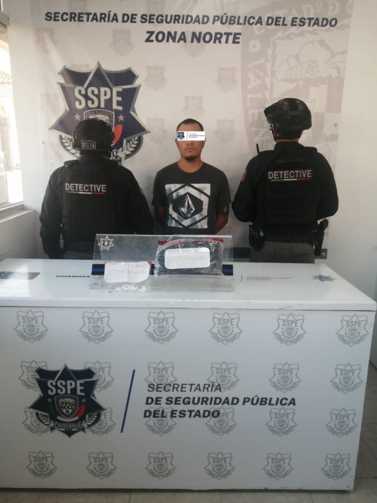 La Secretaría de Seguridad Pública del Estado (SSPE), llevó a cabo en Ciudad Juárez la detención de un masculino de 30 años, identificado como Germán Daniel G. A., por la presunta comisión de delitos contra la salud.
