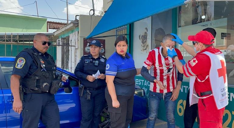 Paramédicos particulares y de la Cruz Roja Mexicana acudieron al lugar para brindar atención médica al hombre herido, quien posteriormente fue trasladado a un hospital para una evaluación más detallada de sus lesiones.