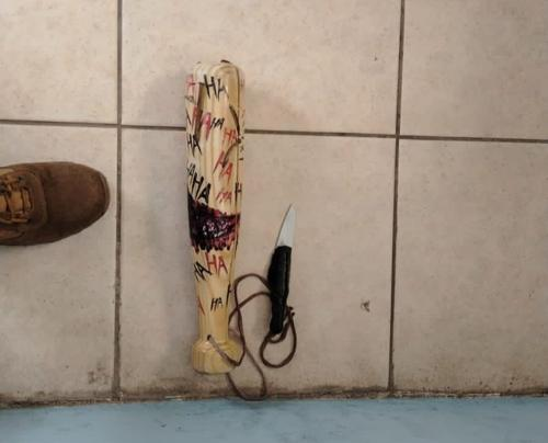 El sujeto fue identificado como Jaime A.B.U. de 23 años, el hombre fue detenido tras un forcejeo con las autoridades por el delito de violencia familiar. Durante la detención se logró asegurar un cuchillo artesanal y un bate de madera modificado con clavos.