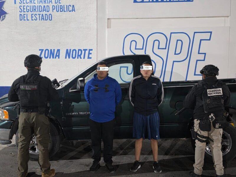Como parte de las acciones en el combate a la criminalidad, la Secretaría de Seguridad Pública del Estado (SSPE), en colaboración interinstitucional con la Guardia Nacional, llevó a cabo la detención de dos sujetos en Ciudad Juárez, a quienes se les aseguró un arma de fuego y presunta droga.