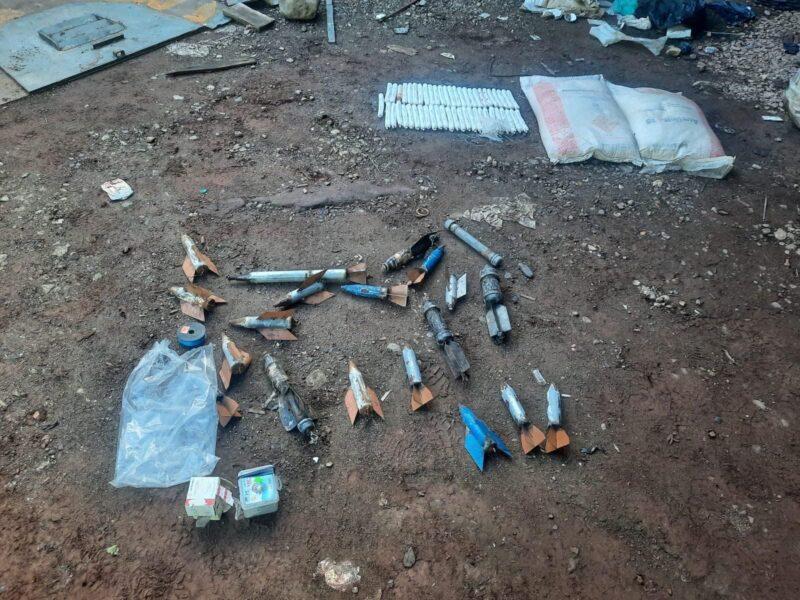 El material asegurado incluía tubos metálicos, cilindros de gas, extintores y lanzas aéreas adaptadas para dron, así como 51 cargas emulex, dos costales con 50 kilogramos de emulex y 164 estopines empleados como detonadores.