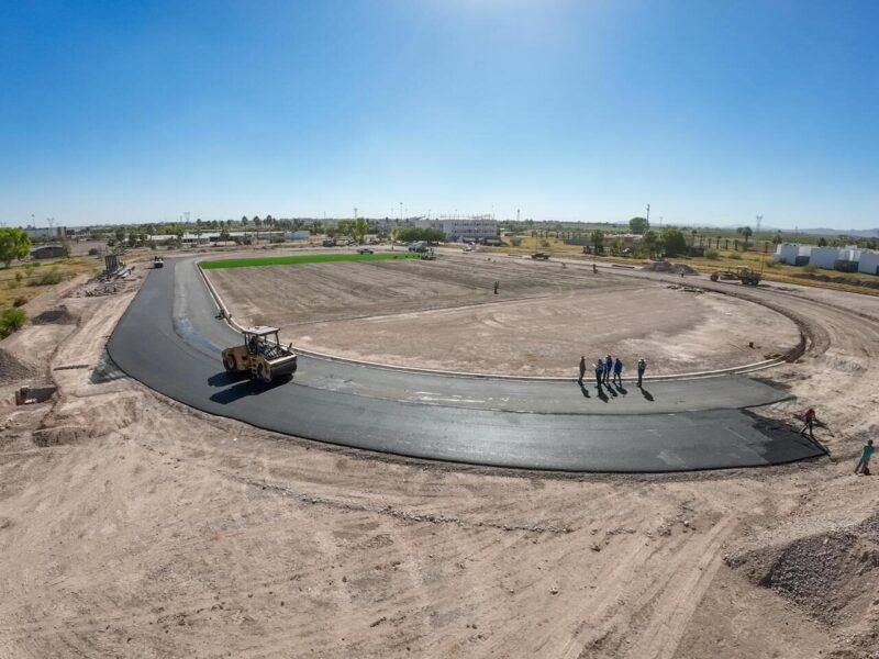 El funcionario detalló que los trabajos continuarán con la conclusión de guarniciones, impregnación y cierre del círculo principal, además de las medias lunas adyacentes al área de pasto sintético. Este proceso forma parte del plan integral para garantizar la durabilidad y calidad de la pista, así como la correcta instalación de sus componentes.