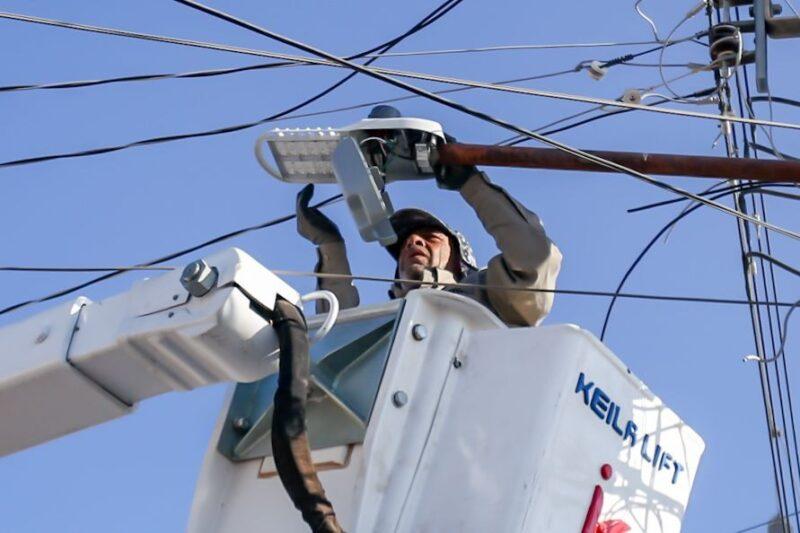 La Dirección de Servicios Públicos continúa avanzando en la renovación del alumbrado público en la zona urbana, con trabajos que se realizan de manera constante durante el día, como se aprecia en las labores de instalación y reemplazo de luminarias en distintos sectores del municipio.