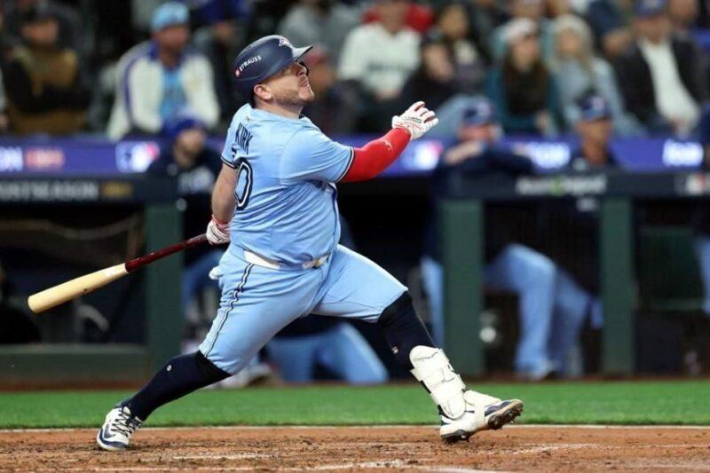 Springer, Guerrero, el mexicano Alejandro Kirk y Addison Barger aportaron sendos vuelacercas. Los Azulejos totalizaron 2 mil 4 pies con sus jonrones, entre 18 hits.