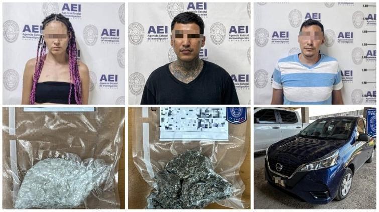 La detención se realizó este jueves 25 de septiembre. Los sujetos fueron identificados como Jesús Armando M. R., de 34 años; Víctor Manuel A. M., de 30 años; y Andrea Guadalupe E. R., de 25 años.