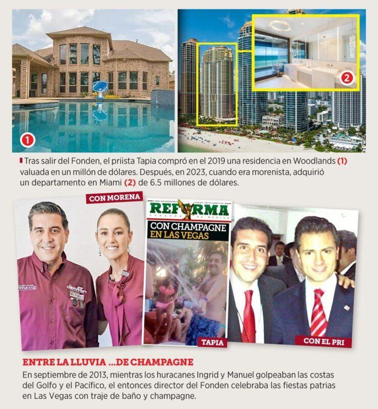 Además, Tapia tiene propiedades que contradicen el decálogo morenista. Compró una residencia de un millón de dólares en la exclusiva zona de Woodlands en Houston en 2019, un año después de haber dejado la senaduría por el PRI y, en el 2023, compró un departamento valuado en 6.5 millones de dólares en Miami, según reveló en mayo del 2024 Mexicanos contra la Corrupción y la Impunidad (MCCI).