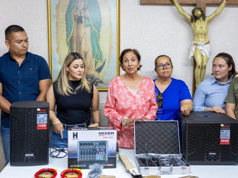En el ámbito cultural y espiritual, Estacionómetros también entregó equipo de sonido al Coro del Templo de Cristo Rey, fortaleciendo su labor durante las celebraciones religiosas y actividades comunitarias. El donativo incluyó un bafle Nova TX8, un subwoofer TX10, mezcladora Harden de 8 canales, bases para bafle y micrófonos, así como cables de conexión, todo con el objetivo de mejorar la calidad y el profesionalismo de sus presentaciones.