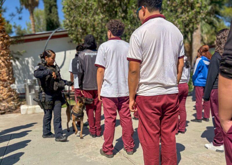 Con el objetivo de prevenir conductas de riesgo, promover entornos escolares seguros y fortalecer la confianza entre comunidad estudiantil y autoridades, la Dirección de Seguridad Pública Municipal de Delicias, a través del Departamento de Prevención Delictiva, implementó el Protocolo de Estrategia de Intervención para la Prevención de la Comunidad Escolar en el Centro de Bachillerato Tecnológico Agropecuario (CBTa) No. 2, donde participaron más de 800 alumnos distribuidos en 25 grupos de distintos grados.