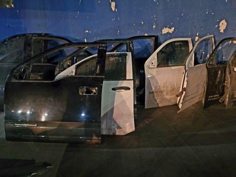 También se aseguró un cofre color café, perteneciente a un Hyundai Elantra 2012 con reporte de robo del 22 de marzo de 2022 en Ciudad Juárez; un motor de automóvil correspondiente a un Jeep Rubicon 2017, robado el 24 de noviembre de 2024 en Benito Juárez, municipio de Buenaventura; así como 13 puertas de pick up con la serie de identificación vehicular borrada; y 8 cofres con la misma alteración.
