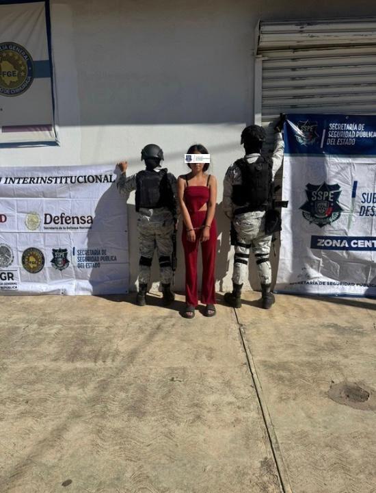 La intervención, realizada en coordinación con la Guardia Nacional y Defensa, se registró en el cruce de las calles Maclovio Herrera y P. de las Garzas, donde elementos operativos detuvieron a Sandra Ivone “N”, de 24 años.