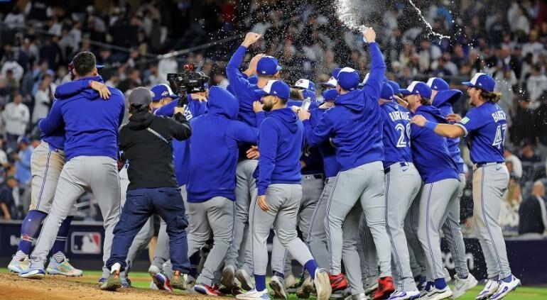 Los Azulejos celebran así su primer boleto desde 2016 a la Serie de Campeonato de la Liga Americana, en la que chocarán ante los Tigres o los Marineros, serie que está igualada 2-2.