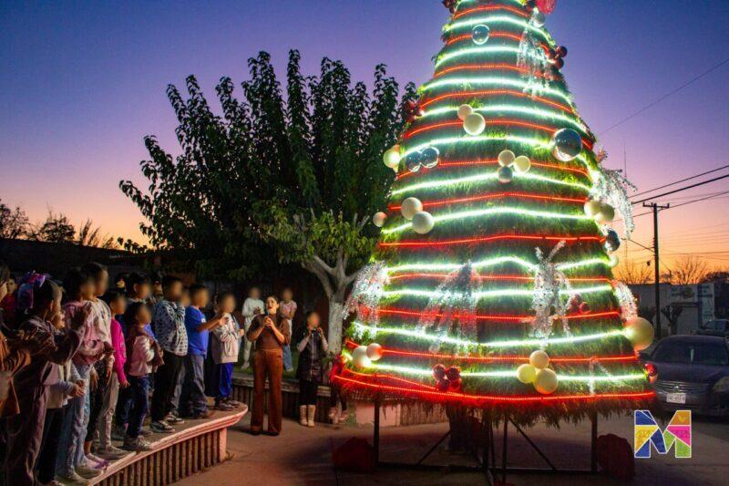 La alcaldesa resaltó que, si bien el Gobierno Municipal realiza el encendido del pino en la cabecera municipal, es prioridad llevar estas celebraciones a cada rincón de Meoqui, ya que a muchas familias se les dificulta trasladarse hasta la plaza principal: “A través del DIF buscamos acercarnos a todas las comunidades; hoy iniciamos en Las Puentes, pero estaremos visitando más localidades para compartir momentos de diversión, convivencia y unión familiar”, afirmó.