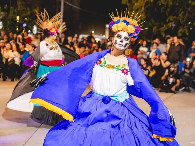 En un ambiente lleno de color, música y tradición, el festival “Las Delicias de la Muerte” se vivió con gran éxito en la Plaza de Armas de Delicias, donde cientos de personas disfrutaron de una noche llena de alegría y talento local. El evento, coordinado por el área de Cultura del municipio, reunió a las distintas agrupaciones de danza y música que forman parte del patrimonio artístico de la ciudad, en una velada que celebró la vida, la memoria y las raíces mexicanas.