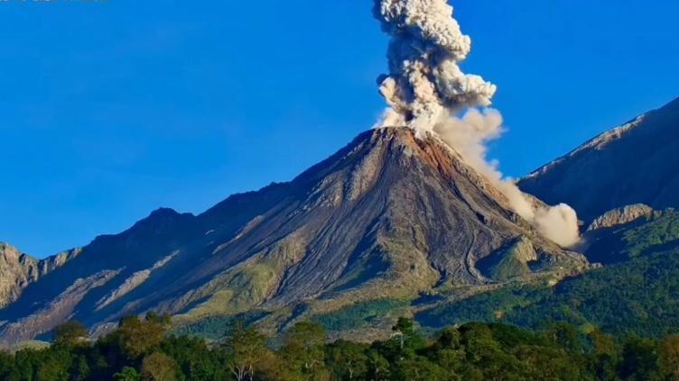 En las redes sociales, se viralizó un video tomado por una cámara de seguridad en el que se puede ver cómo el volcán va entrando en erupción poco a poco hasta dejar ver una gran columna de cenizas.