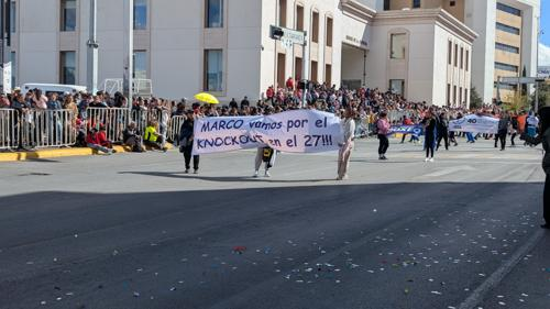 Durante el desfile del 115 aniversario de la Revolución Mexicana, un contingente deportivo mostró una lona con la siguiente leyenda: «Marco vamos por el KNOCKOUT en el 27».