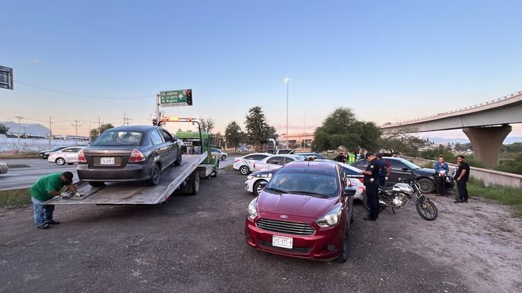 Dos hombres resultaron graves en un choque a las 07:00 AM aproximadamente en el cruce de Sacramento y canal; un Chevrolet Aveo gris impactó a motociclistas, quienes fueron atendidos por Cruz Roja y trasladados al hospital.