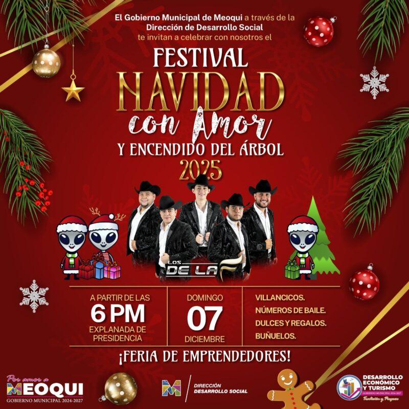 Meoqui se encuentra listo para celebrar hoy domingo el Festival “Navidad con Amor” y el encendido del árbol navideño, el cual se realizará en la explanada de la Presidencia Municipal a partir de las 6 de la tarde, contando con villancicos interpretados por escuelas primarias del municipio, además de presentaciones de baile, dulces y regalos para todos los niños, así como la Feria de Emprendedores y la presentación del Grupo “Los de la F”.