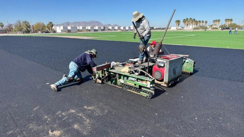 Señaló que los trabajos podrían extenderse entre 15 y 20 días más, dependiendo de las condiciones técnicas y climáticas, con el objetivo de garantizar la correcta instalación del recubrimiento deportivo y la durabilidad de la obra.