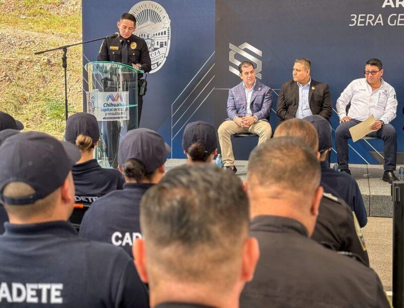 Raymundo González resaltó que esta formación representa un paso importante para consolidar una corporación más preparada, humana y profesional, enfocada en la prevención, la proximidad social y la vocación de servicio. “Estos jóvenes son un ejemplo de disciplina y compromiso; su entrega fortalece el futuro de la seguridad en Delicias”, expresó.