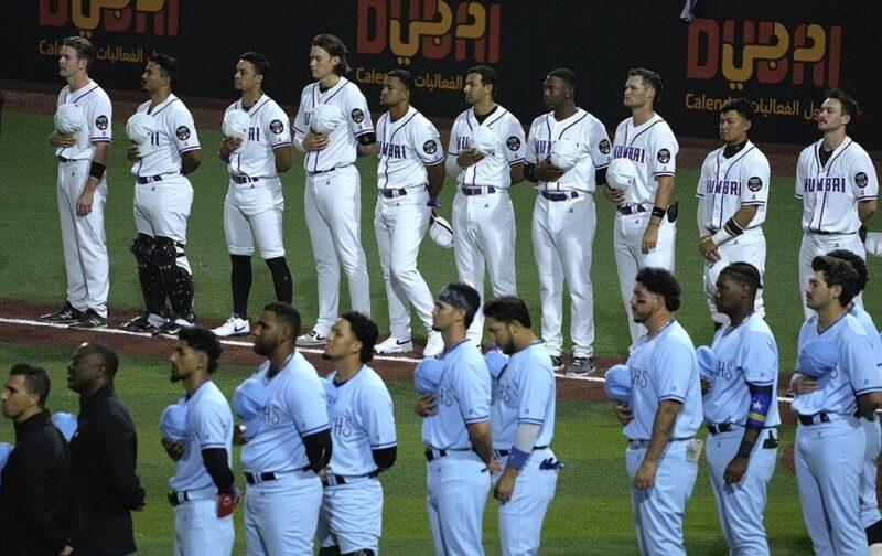 En medio del calor resplandeciente en el desierto que rodea a Dubái, emerge una vista poco común en el Oriente Medio: un campo de béisbol.
