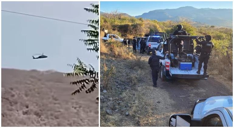 A través de redes sociales grabaron en video al helicóptero sobrevolando la zona, mientras se escuchaban detonaciones de armas de fuego.