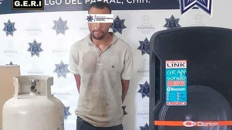 Arath Rubén O. M., de 27 años, fue detenido en Parral por robar una bocina y un tanque de gas de la casa de su madre en el Barrio del Conejo. Los objetos fueron recuperados durante un recorrido en la colonia Centro.