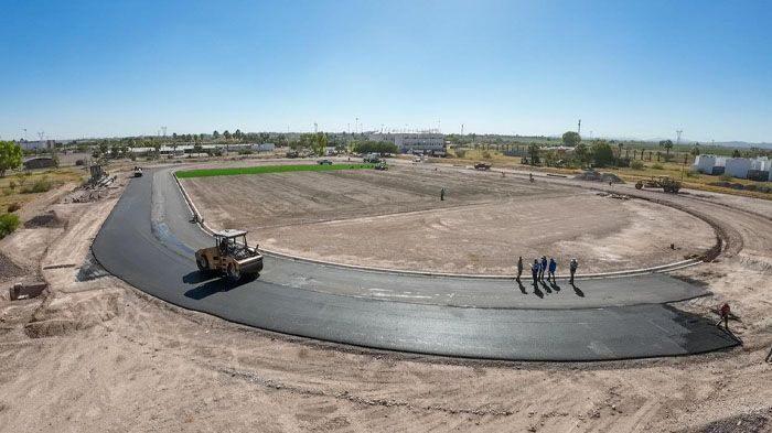 DELICIAS.- La sindica municipal Gabriela Franco, indicó que en cuanto a los trabajos de la pista de atletismo del estadio olímpico lleva un retraso de más de dos meses.