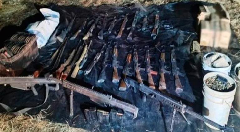 Fuerzas federales arrestaron a ocho sujetos en posesión de un arsenal de 27 armas incluyendo tres Barret, 30 artefactos explosivos como los que arrojan desde drones, siete vehículos y demás equipamiento de combate.