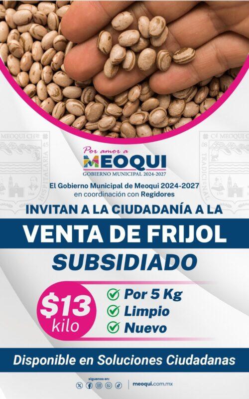 El Gobierno Municipal de Meoqui continúa con el programa de frijol subsidiado, ofreciendo este producto de la canasta básica a un precio accesible, ahora por la cantidad de 13 pesos por kilo, con un límite de hasta cinco kilos por familia. Así lo informó Miguel Gómez Hermosillo, director de Soluciones Ciudadanas, quien destacó que este programa atiende la encomienda de la alcaldesa Miriam Soto de apoyar la economía de las familias meoquenses, contribuyendo a la reducción de gastos en el hogar.