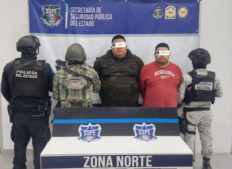 Elementos de la Policía de Despliegue de la Secretaría de Seguridad Pública del Estado (SSPE) llevaron a cabo el arresto de Jesús Antonio C. R. y Carlos Gabriel A. A., por su probable participación en el delito de homicidio doloso ocurrido el pasado 17 de febrero, en el que un hombre fue privado de la vida por disparos de arma de fuego al interior de un vehículo en Ciudad Juárez.
