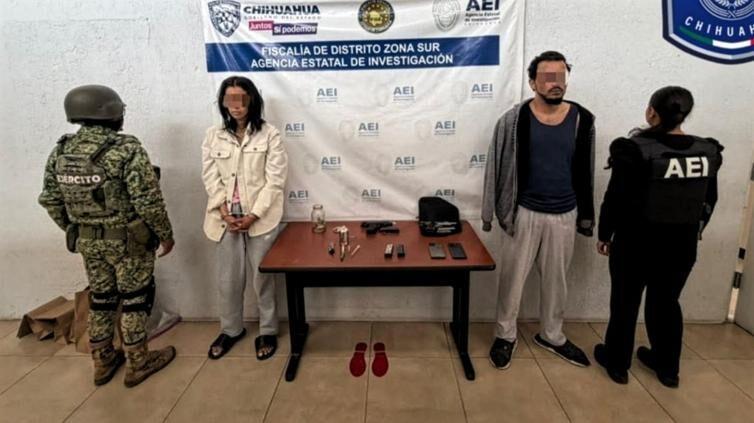Durante la intervención, las autoridades detuvieron a Luis S. A. y Vania Edith V. R., de 37 y 33 años de edad, respectivamente. En el lugar se aseguraron dos pistolas tipo escuadra, ambas marca Ruger calibre 9 milímetros, con sus respectivos cargadores abastecidos, así como dos cargadores calibre .45 milímetros.