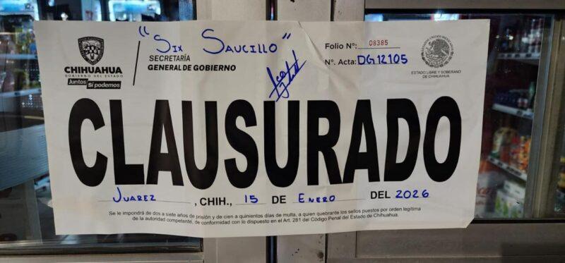 Durante la semana del 12 al 18 de enero, personal de la Subsecretaría de Gobernación realizó 288 inspecciones a establecimientos que expenden y/o comercializan bebidas alcohólicas, con resultado total de 13 clausuras: una en Chihuahua, Cuauhtémoc y Aquiles Serdán, dos en Guerrero y ocho en Juárez.