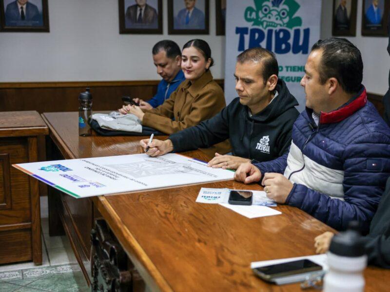 La firma del convenio fue encabezada por el presidente municipal Jesús Valenciano García, acompañado por el director del Deporte y la Juventud del Instituto Municipal del Deporte y la Juventud, Miguel Aguirre; el diputado local Roberto Carreón, así como representantes de La Tribu, quienes coincidieron en la importancia de sumar esfuerzos en favor de la juventud del municipio.