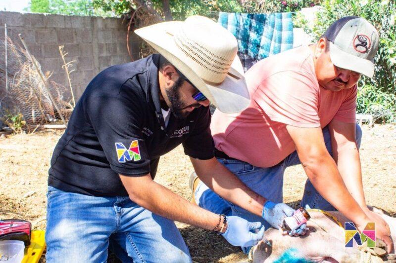 En Meoqui se continúa trabajando a favor de los pequeños productores a través del programa “Médico Visita mi Establo”, mediante el cual en esta ocasión se brindó el servicio de castración de cerdos a un productor de la comunidad de Guadalupe Victoria.