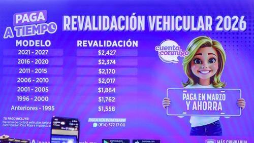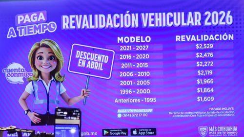 CHIHUAHUA.- La Secretaría de Hacienda de Gobierno del Estado de Chihuahua, informó este jueves de los costos y descuentos proyectados para la Revalidación Vehicular 2026. Aquí presentamos los detalles.