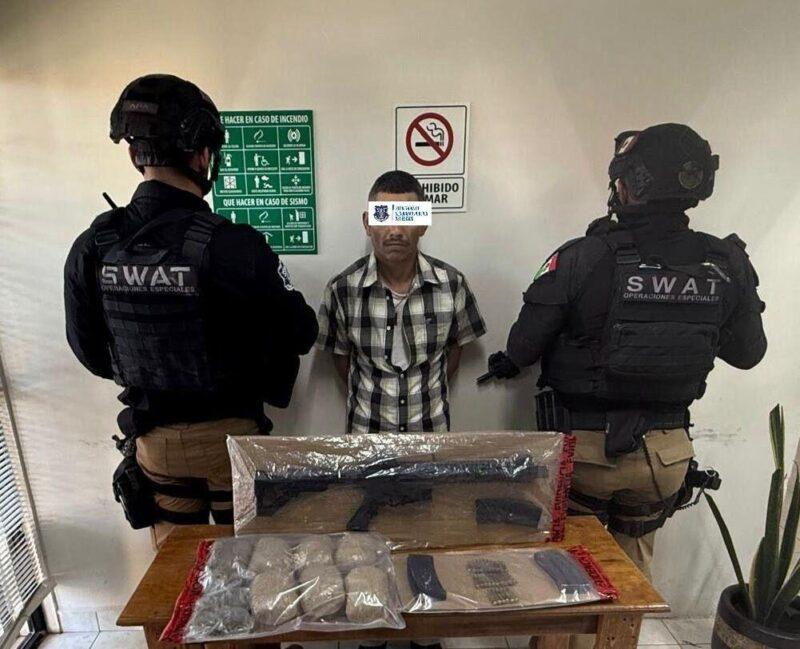 Elementos de la Secretaría de Seguridad Pública del Estado (SSPE), a través de la Subsecretaría de Estado Mayor, detuvieron en el municipio de Aldama a un masculino, a quien le aseguraron 1.300 kilogramos de marihuana, cargadores abastecidos y cartuchos útiles, tras atender un reporte ciudadano por portación de arma de fuego.