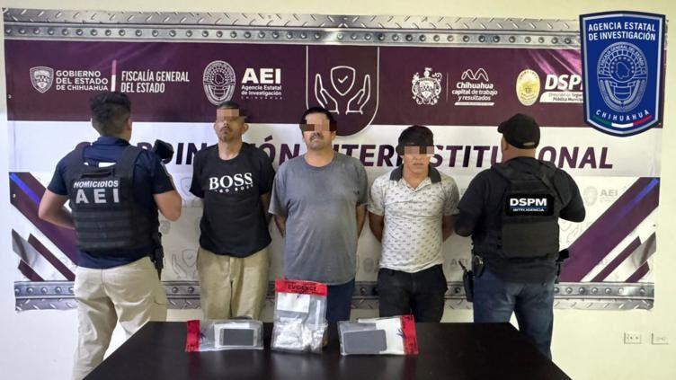 Elementos de la Agencia Estatal de Investigación, en coordinación con la Dirección de Seguridad Pública Municipal, detuvieron en flagrancia a tres hombres por delitos contra la salud en la modalidad de narcomenudeo en la colonia Revolución, ciudad de Chihuahua, el martes alrededor de las 21:00 horas.