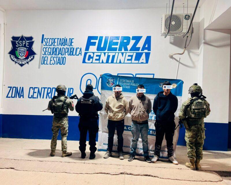 Derivado de la actuación policial, fueron detenidos tres masculinos identificados como Alejandro C.M, de 34 años; Erik Omar V.S, de 32 años; e Irvin Adrián S.T, de 27 años.