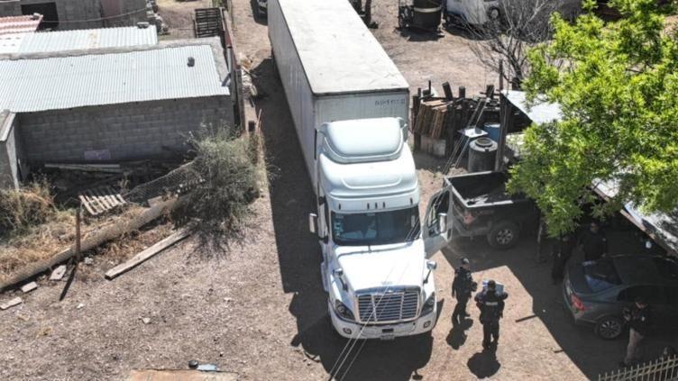 Elementos de la Secretaría de Seguridad Pública del Estado de Chihuahua aseguraron un tractocamión y una caja remolque con reporte de robo durante un operativo de vigilancia realizado en las inmediaciones del ejido Rancho Enmedio.