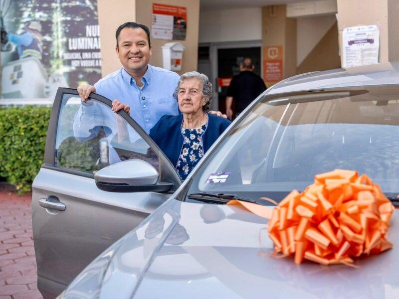 Acompañada de su familia, la señora González Parra, de 90 años de edad, acudió a la explanada de la Presidencia Municipal para recibir las llaves del automóvil. Durante el acto, las autoridades municipales destacaron la importancia de reconocer a quienes cumplen puntualmente con el pago del impuesto predial.