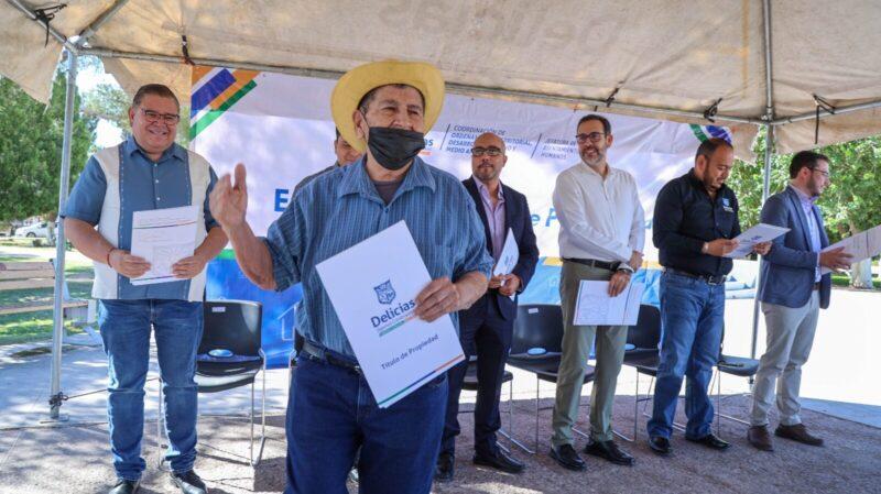 Esta mañana, en la plaza Benito Juárez, el Gobierno Municipal encabezado por Jesús Valenciano realizó la entrega de 40 títulos de propiedad a familias de Delicias, con lo que se alcanza ya un total superior a los 1200 documentos entregados durante la actual administración.