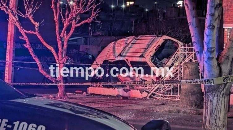 Al llegar al cruce con la calle Búho, perdió el control del volante, brincó el camellón y colisionó primero contra un Chevrolet, Beat de color rojo y después contra la barda y barandal de un domicilio con el numeral #2411.