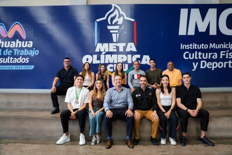 H. Ciudad de Chihuahua, Chih.- El alcalde Marco Bonilla se reunió con atletas y entrenadores beneficiarios del programa Meta Olímpica CUU, iniciativa del Gobierno Municipal que impulsa el desarrollo de deportistas de alto rendimiento rumbo a los Juegos Olímpicos de Los Ángeles 2028.