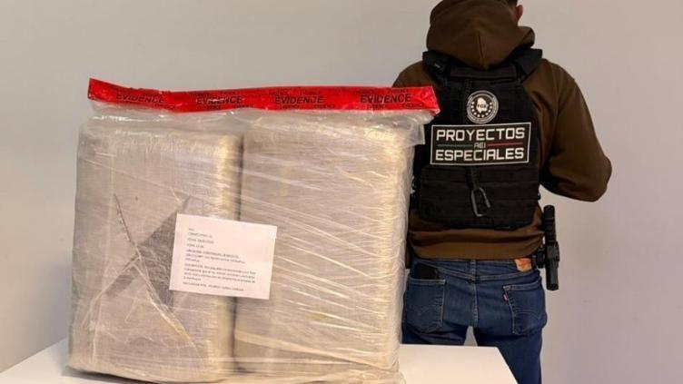 Durante la intervención, los agentes localizaron dos paquetes envueltos con fleje transparente, los cuales contenían una hierba verde y seca con características propias de la mariguana, que en conjunto arrojaron un peso de 19 kilogramos.