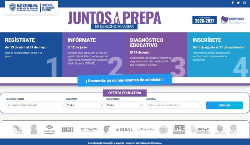 CHIHUAHUA.- La Secretaría de Educación y Deporte (SEyD) informó que a partir del próximo lunes inicia el Registro Único en Línea para aspirantes a planteles públicos de Educación Media Superior, ciclo escolar 2026-2027, como parte de la estrategia “Juntos a la Prepa. Mi Derecho, Mi Lugar”.