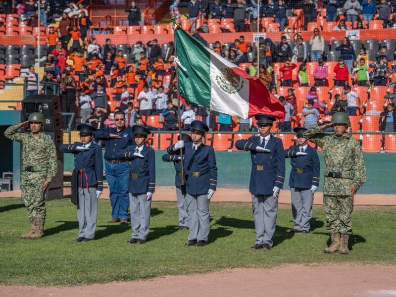 Con la participación de 2 mil 500 estudiantes de tercer grado, pertenecientes a 72 planteles educativos, la totalidad de este nivel en el municipio, el Gobierno Municipal de Delicias conmemoró el Día de la Bandera con un acto cívico celebrado en el Gran Estadio Delicias, en una jornada que fortaleció los valores cívicos y el amor por los símbolos patrios entre la niñez.