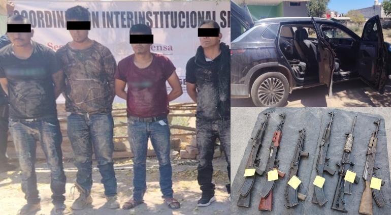 Durante el operativo se aseguraron seis armas largas, 45 cargadores, 2,965 cartuchos, así como un vehículo con reporte de robo. Además, lograron la liberación de una persona que se encontraba privada de la libertad.